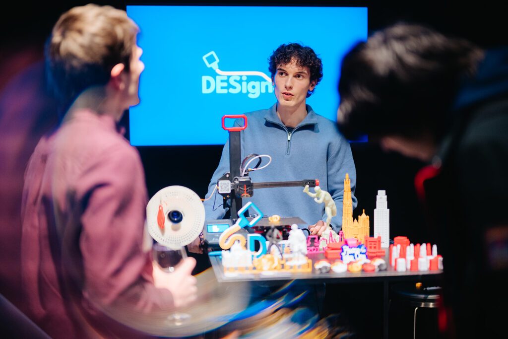 Bij DESign3D vertelde student-ondernemer Des De Borger hoe een hobby tijdens de coronaperiode uitgroeide tot een eigen onderneming rond 3D-printing, met ontwerpen geïnspireerd op Antwerpen en haar iconische gebouwen.