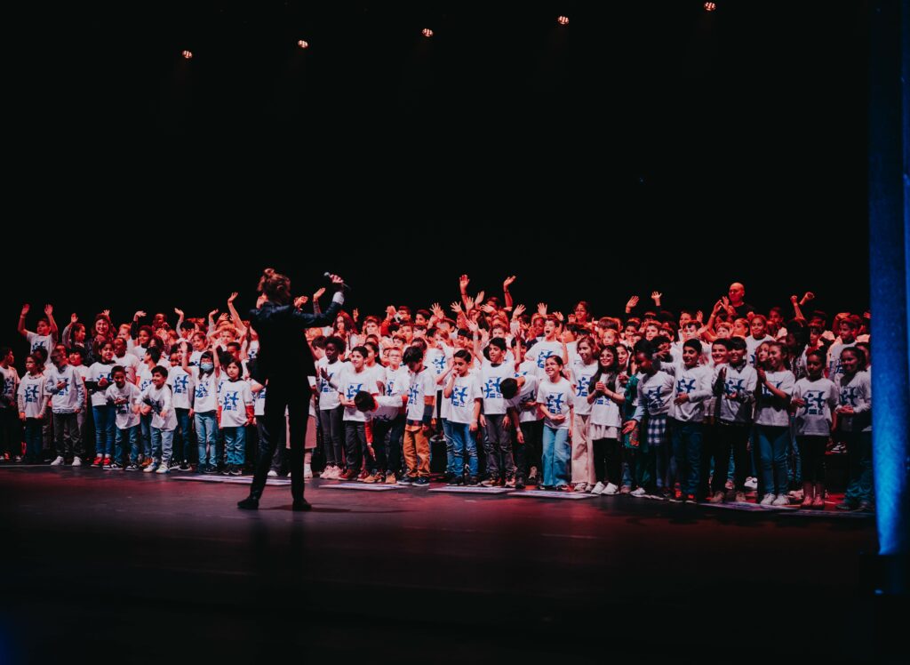 Zuidgeluid gelooft in muziek! Zuidgeluid ziet zingen als middel om tot verbinding en sociale inclusie te komen en als hefboom voor de ontwikkeling van sociale vaardigheden, teamgeest, taalverwerving en een positief zelfbeeld. Met hun projecten willen zij kwetsbare groepen kennis laten maken met cultuur, met zelf aan cultuur participeren en met het plezier van samen zingen. Ze willen hen stimuleren om letterlijk en figuurlijk hun eigen stem te vinden en te laten horen in de samenleving. Voor de opening van het academiejaar oefenden 3 scholen uit het Antwerpse twee liedjes in. Ze waren met 280 en maakten concreet waar de vorige sprekers het theoretisch over hadden. Dit is Antwerpen. Dit is the next generation. Zij zijn de toekomst. | ![]() |